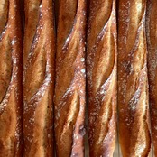 自家製のオレンジピール、ラム酒に漬けたレーズン、赤ワイン漬けのいちじく、ナッツを練り込み、中央には自家製のパート・ダマンド。オレンジシロップ、バターを染み込ませ、砂糖をたっぷりとまぶしました。
